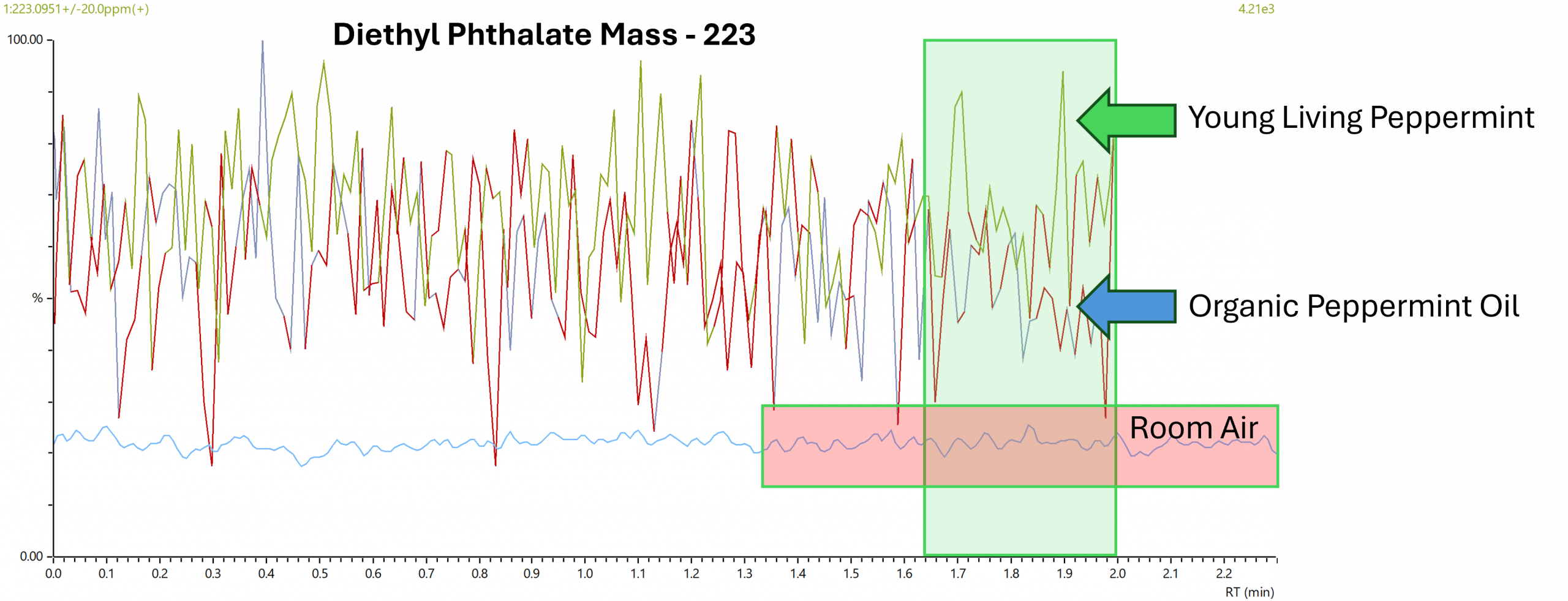 Com­pa­ri­son of phtha­la­te con­tent in room air com­pared to two dif­fe­rent es­sen­ti­al oils