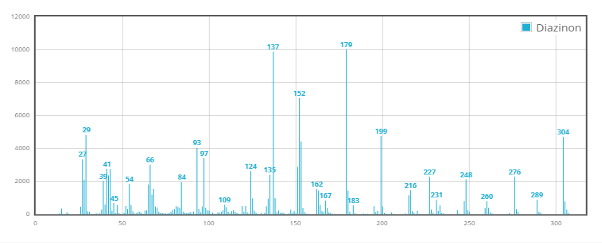 In qualitative studies covering more than 160 GC-amenable pesticides, this ionization behavior was consistently observed across compound classes. Compared to EI spectra, the resulting data are dominated by intact molecular species with reduced fragmentation.
